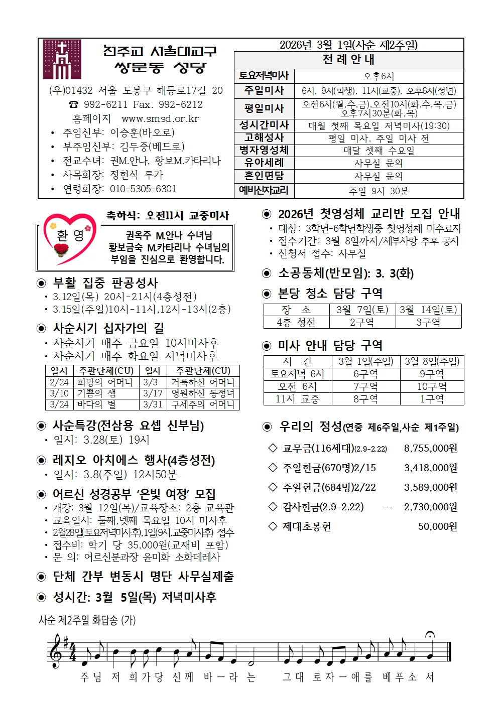 2026년 3월 1일 주보 페이지 정보 작성자 쌍문동성당 댓글 댓글 0건 조회Hit 10회 작성일Date 26-02-26 09:14 본문 찬미예수님, 2026년 3월 1일 쌍문동성당 주보입니다. 목록 다음글2026년 2월 22일 주보 26.02.17 댓글 0 댓글목록 등록된 댓글이 없습니다.